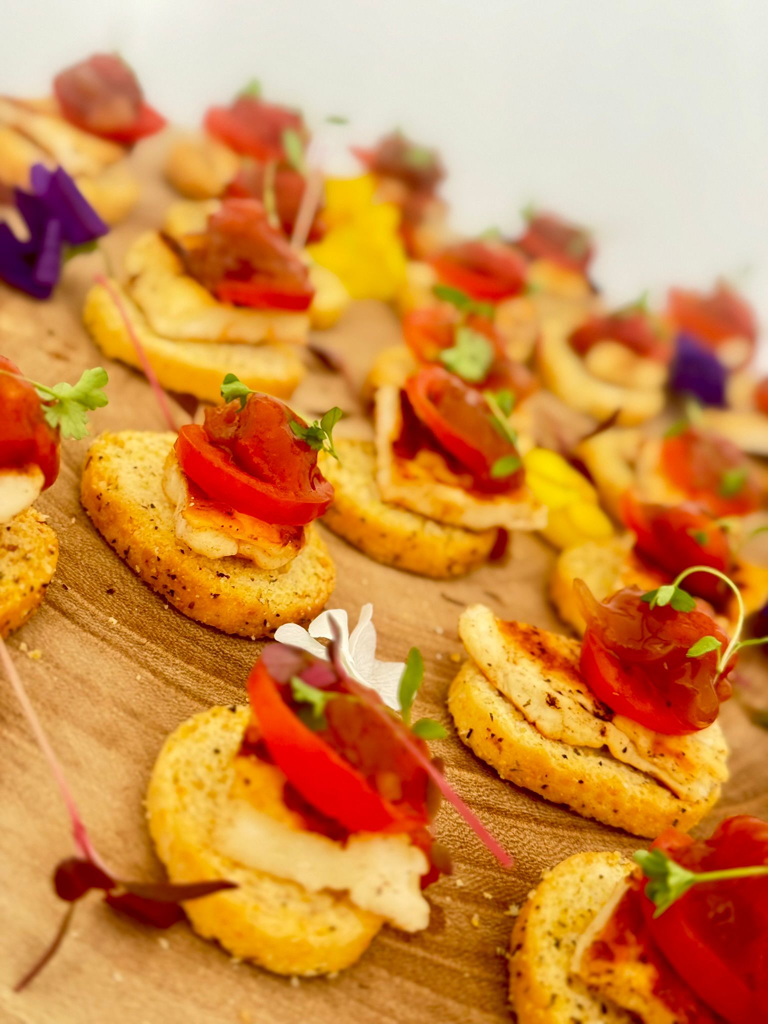 To kick things off, our team floated around with trays of mouth-watering canapés – think honey and mustard sausages, smoked Scottish salmon, roasted halloumi and tomato crostini, and a silky-smooth pâté. Bursting with colour and flavour, they were almost too pretty to eat. Almost!
